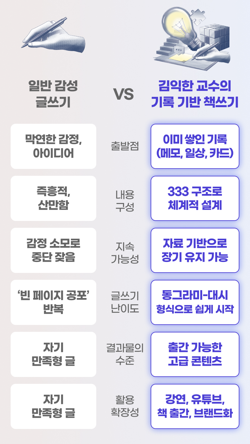 대신 기록을 활용해 콘텐츠를 구조화하고 메시지를 설계하는 법을 가르칩니다.
