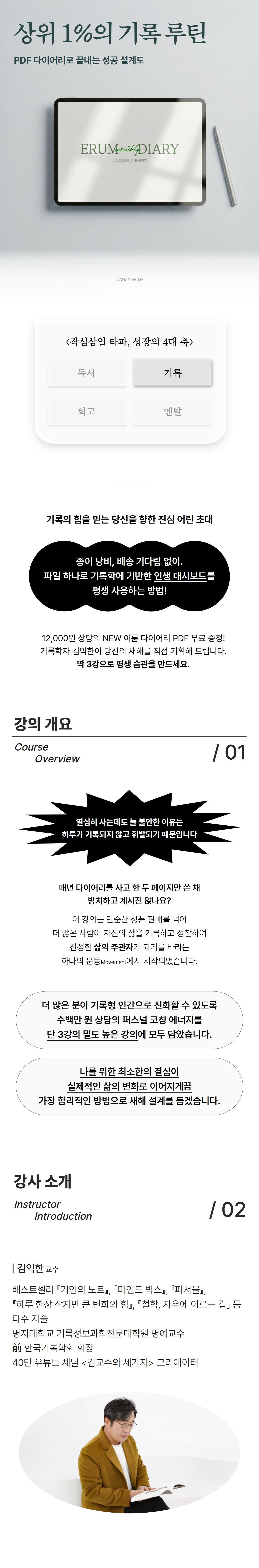 단 3강 안에 연간–월간–주간–일간 계획과 성찰 루틴을 한 번에 세팅하는 실습형 강의입니다.