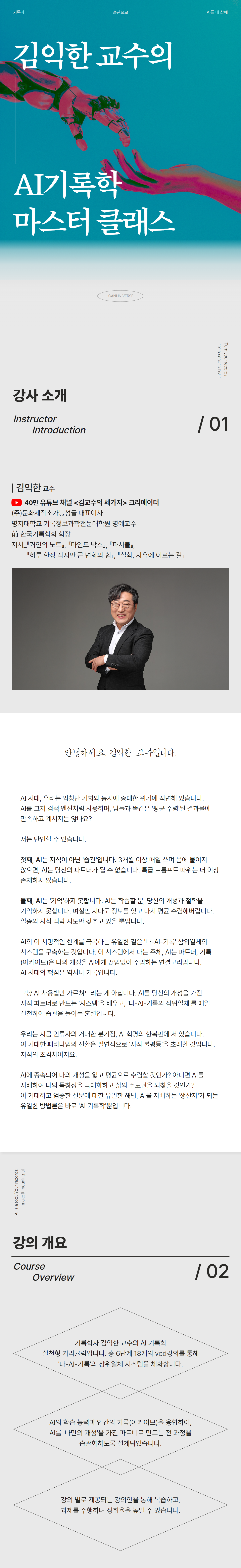 ✅수강 방법 : 강의 구매 후 [내 강의실] > [김익한 교수의 AI기록학 마스터 클래스]에서 수강하실 수 있습니다
