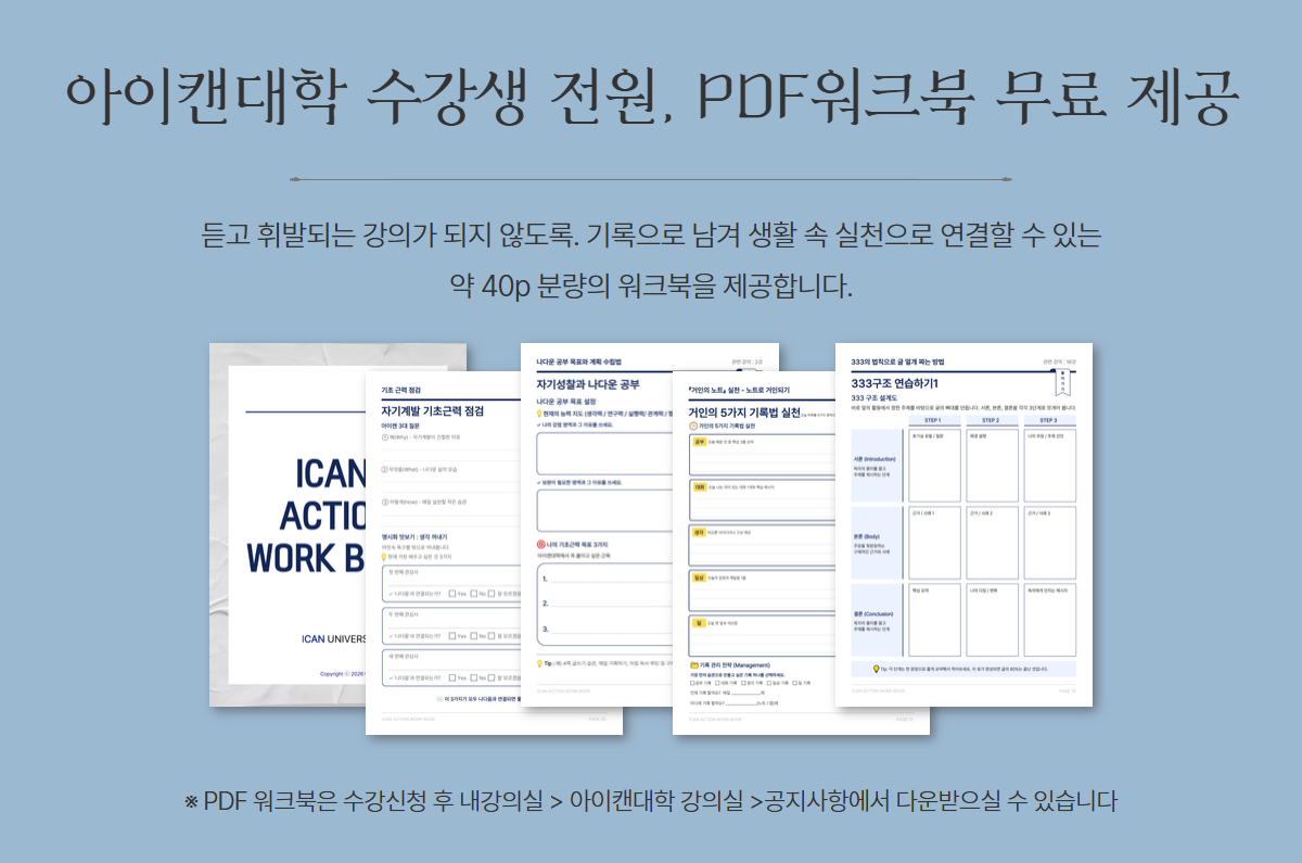 ✅수강 방법 : 강의 구매 후 [내 강의실] > [김익한 교수의 아이캔대학]에서 수강하실 수 있습니다