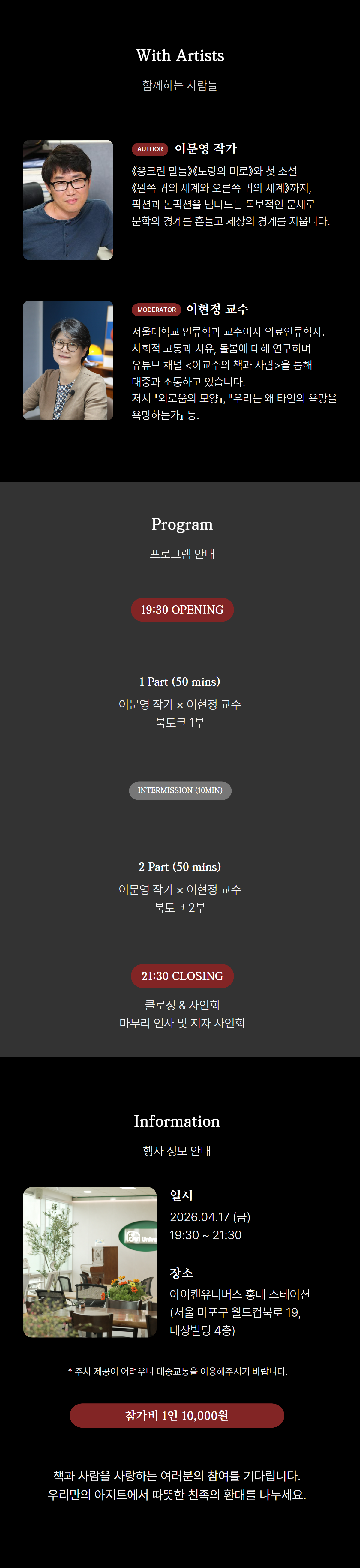 👤 북토크 : 이문영 작가 × 이현정 교수